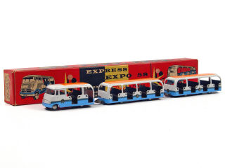 TEKNO (DANEMARK) 851 MERCEDES Minibus articulé à chariots bleu ciel, gris & orange