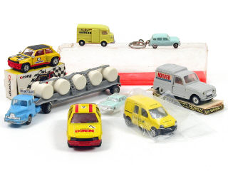 miniatures reproduisant les modèles : RENAULT, CITROËN & UNIC - on y retrouve les marques : NOREV, MICROMINIATURE NOREV, CORGI JUNIOR, MAJORETTE & MS EVOLUTION - 3 véhicules en porte-clés, 4 en boîte & 2 sous sachet - une voiture en état 'B' & une autre avec blister de boîte manquant