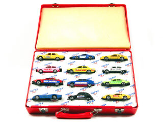 contient : PEUGEOT 604 'BELIN', FIAT X1/9 'CHIPIE', MATRA SIMCA MS670 'GITANES', PEUGEOT 505 'DININ', CITROËN BX 'LA VACHE QUI RIT', CITROËN 2CV6 'PETIT BATEAU', FORD MUSTANG 'BENCO', CITROËN CX 2200 'ORANGINA', FORD FIESTA 'HARIBO', CITROËN VISA 'POLICE', RENAULT 18 'PIERROT GOURMAND' & LIGIER JS2 'KODAK' - avec cales & mousse de boîte