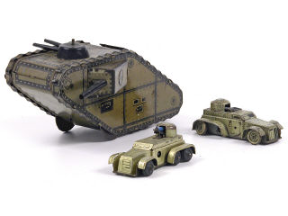 R.S.A. Char d'assaut en tôle lithographiée kaki & noir