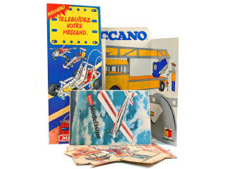 MECCANO Panneau publicitaire de détaillant en carton jaune, bleu métal & blanc