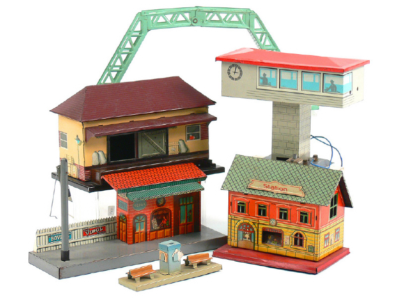 D.R.G.M. (ALLEMAGNE) Petite gare en tôle lithographiée avec quai & signal