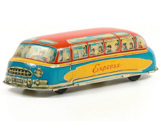 DIVERS (ALLEMAGNE) H-2000 Autocar en tôle lithographiée 'EXPRESS' bleu, orange & jaune