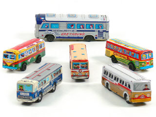DIVERS (JAPON) Ensemble de 6 autocars en tôle lithographiée
