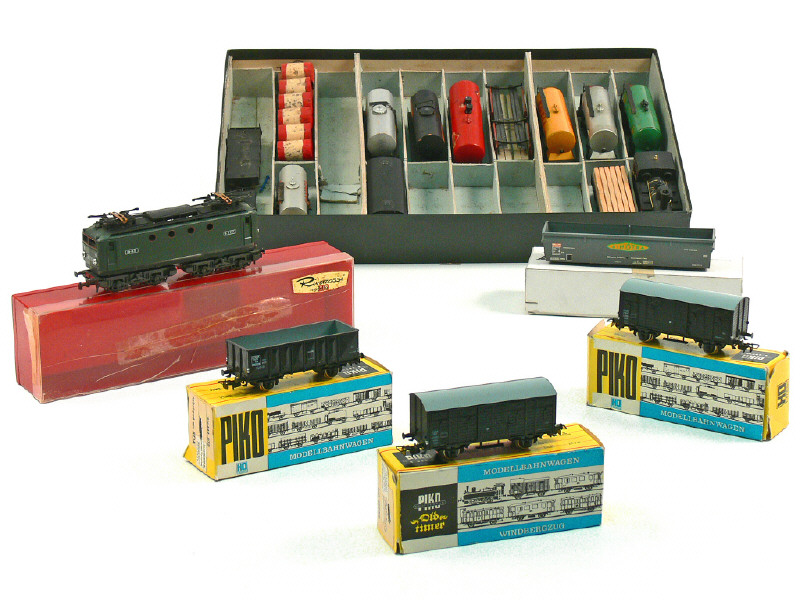états de 'A' à 'C' - comprend : une locomotive à vapeur type 020, une motrice électrique type BB-8178, 17 voitures de voyageurs - petits manques - quelques traces d'oxydation - un wagon en kit à monter - 4 modèles avec boîte - on y retrouve notamment les marques : RIVAROSSI, PIKO & FRANCE TRAINS