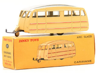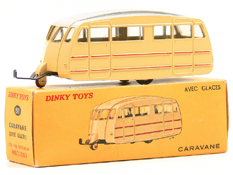 DINKY TOYS (FRANCE) 811 Caravane (version avec toit strié) crème, filets rouges, toit blanc