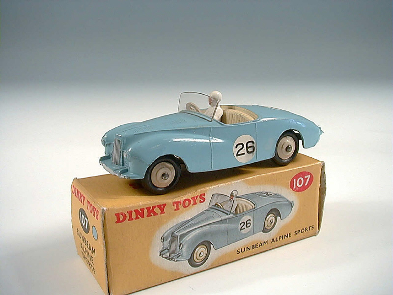 DINKY TOYS (GB) 107 SUNBEAM ALPINE de course bleu ciel, intérieur crème