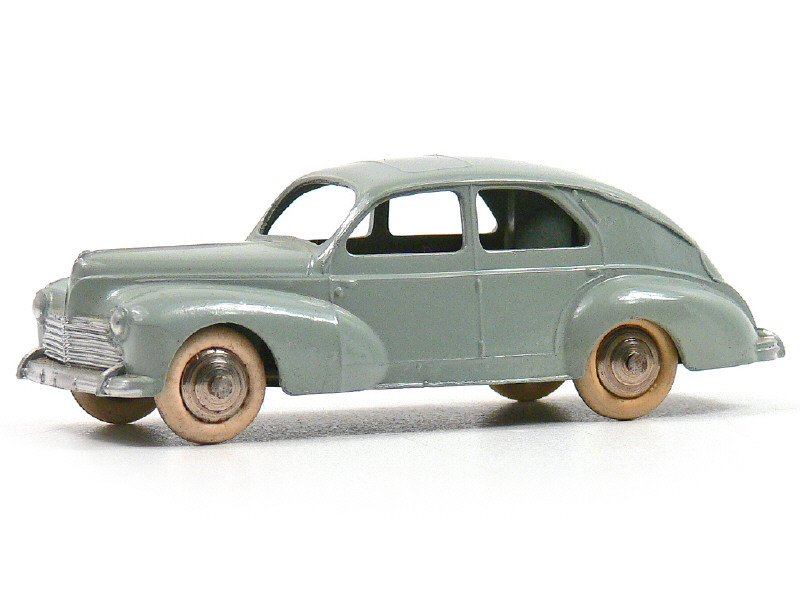 DINKY TOYS (FRANCE) 24R PEUGEOT 203 Petite lunette arrière (version avec intérieur de toit quadrillé & ailes lisses) gris moyen, jantes chromées