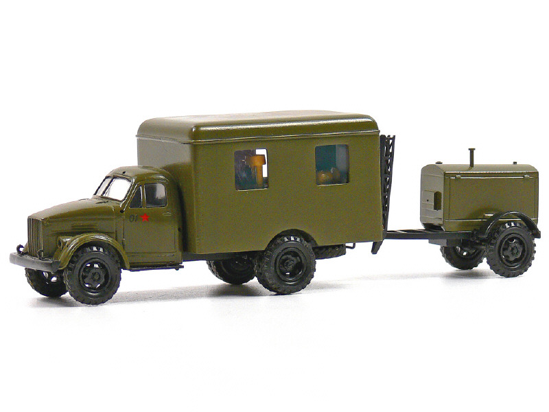 DIVERS (URSS) GAZ 4x4 Fourgon atelier militaire avec remorque-compresseur kaki