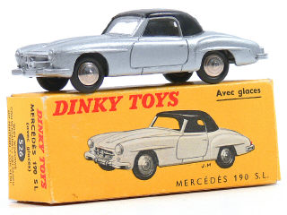 DINKY TOYS (FRANCE) 526 MERCEDES 190 SL (version avec vitres & jantes convexes) gris métal, toit noir