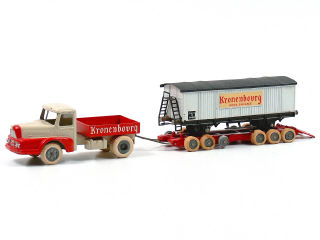 JRD (FRANCE) 123 UNIC avec remorque rail-route 'KRONENBOURG' blanc cassé & rouge
