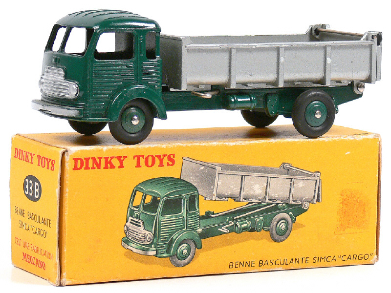 DINKY TOYS (FRANCE) 33B SIMCA CARGO Benne basculante vert foncé, benne gris métal (intérieur strié)
