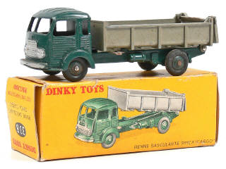 DINKY TOYS (FRANCE) 33B SIMCA CARGO Benne basculante vert foncé, benne gris métal (intérieur strié)