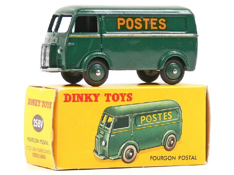 DINKY TOYS (FRANCE) 25BV PEUGEOT D3A 'POSTES' (version avec inscriptions en décalques & 2ème type) vert foncé