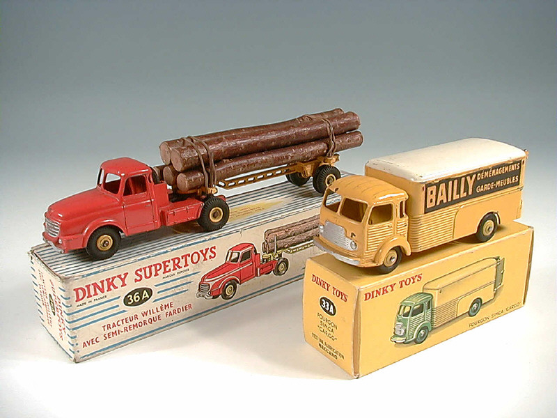 DINKY TOYS (FRANCE) 36A WILLEME Fardier (version avec jantes convexes & remorque ajourée) orange & jaune