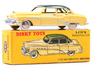 DINKY TOYS (FRANCE) 24V BUICK ROADMASTER (version avec intérieur de toit quadrillé & jantes chromées) jaune paille, toit vert