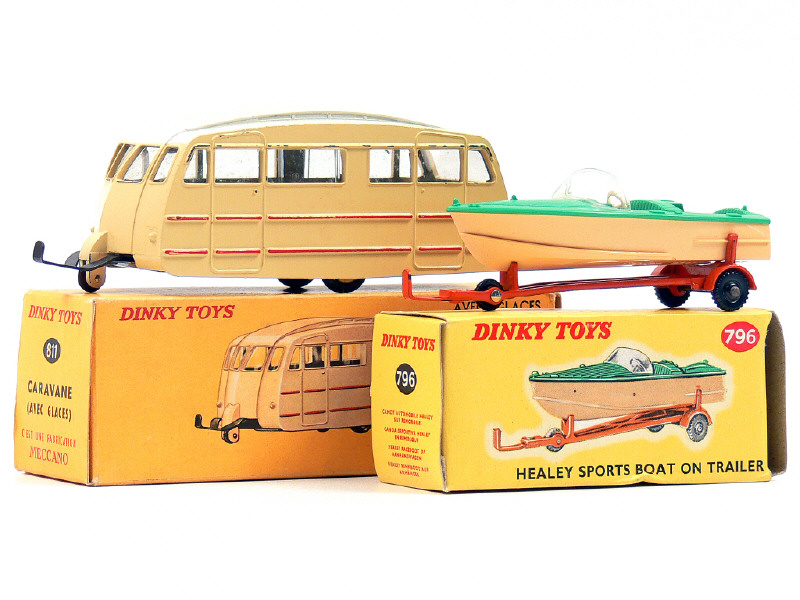DINKY TOYS (GB) 796 HEALEY SPORTS BOAT avec remorque orange, crème & vert