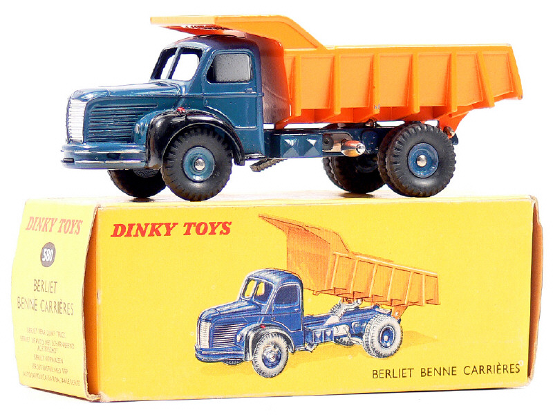 DINKY TOYS (FRANCE) 580 BERLIET Benne carrière MARREL (version avec jantes concaves) bleu foncé & orange