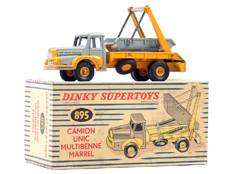 DINKY TOYS (FRANCE) 895 UNIC Multibenne MARREL (version avec jantes concaves) jaune d'or & gris