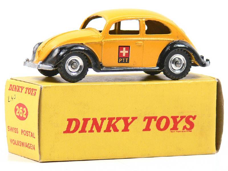 DINKY TOYS (GB) 262 VOLKSWAGEN Coccinelle 'PTT SUISSE' jaune & noir, jantes aluminium