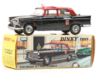 DINKY TOYS (FRANCE) 1400 PEUGEOT 404 'TAXI G7' noir, toit rouge