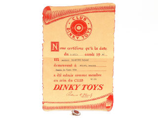 DINKY TOYS (FRANCE) Parchemin 'CLUB DINKY TOYS'