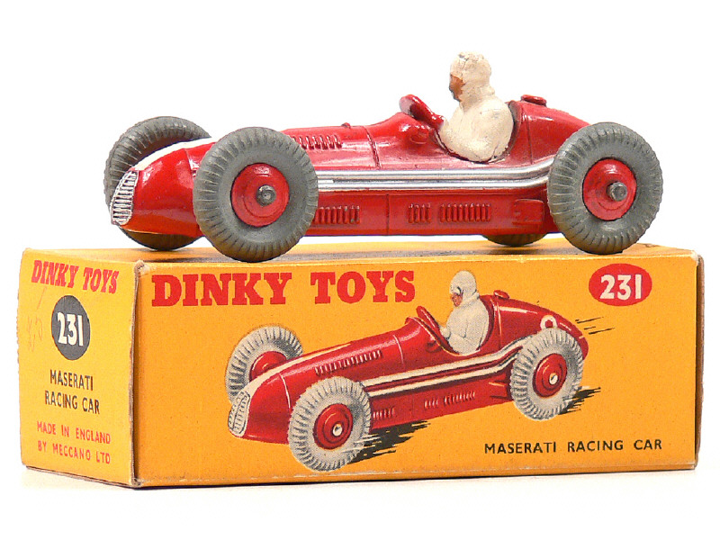 DINKY TOYS (GB) 231 MASERATI de course rouge, flèche blanche, jantes rouges