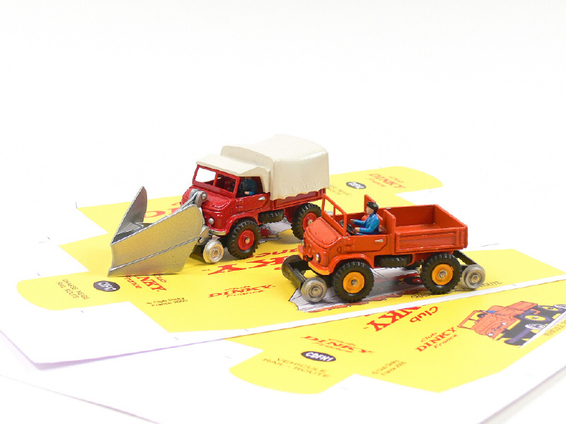 CLUB DINKY FRANCE CDFH2 MERCEDES UNIMOG Camion-plateau rail-route chasse-neige rouge & gris métal