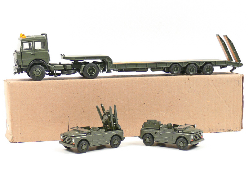 OLD CARS (ITALIE) IVECO Semi-remorque plateau surbaissé transport d'engins de l'armée italienne kaki