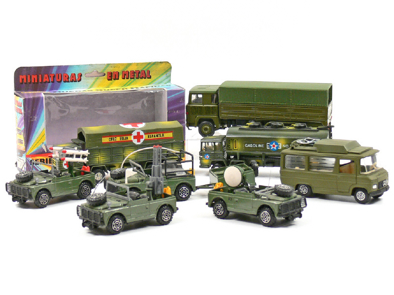 DIVERS Ensemble de 8 véhicules militaires & une remorque