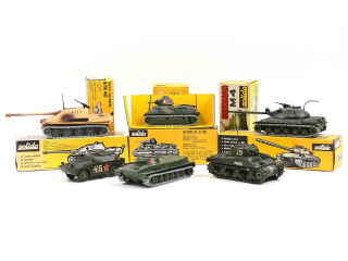 comprend : char AMX30, char SOMUA S35, char SHERMAN M4 (chenilles peintes en noir), un JAGDPHANTHER, un char PT76 & un BTR 40 lance-roquettes