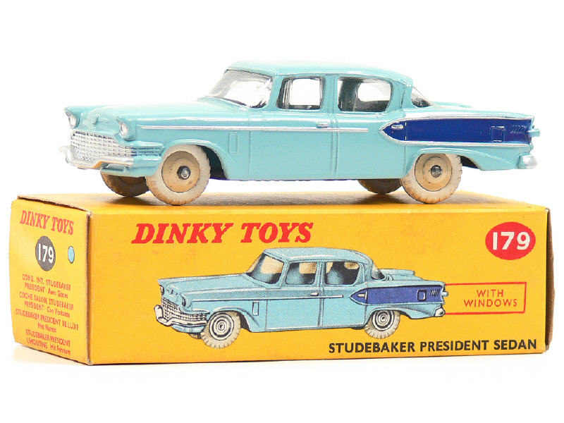 DINKY TOYS (GB) 179 STUDEBAKER PRESIDENT Sedan 2 tons de bleu, jantes beigess