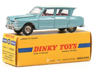 DINKY TOYS (FRANCE) 557 CITROËN AMI 6 (version avec roue de secours sous le capot) bleu ciel, toit blanc