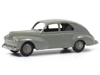 DINKY TOYS (FRANCE) 24R PEUGEOT 203 Petite lunette arrière (version avec intérieur de toit quadrillé & ailes lisses) gris moyen, jantes identiques