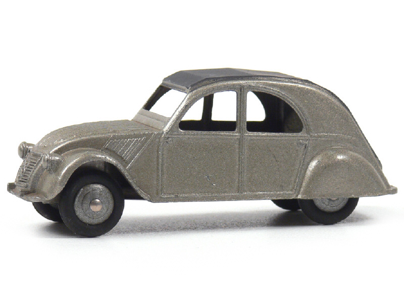DINKY TOYS (FRANCE) 24T CITROËN 2CV (version avec un feu arrière) gris métal doré, axe de roues arrière maté (type 2)