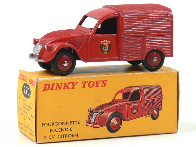 DINKY TOYS (FRANCE) 25D CITROËN 2CV Fourgonnette de pompiers rouge, jantes convexes bordeaux