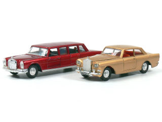 DINKY TOYS (GB) 128 MERCEDES 600 PULLMAN rouge métal, intérieur bleu ciel