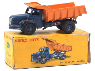 DINKY TOYS (FRANCE) 34A BERLIET Benne carrière MARREL (version avec jantes convexes) bleu foncé & orange