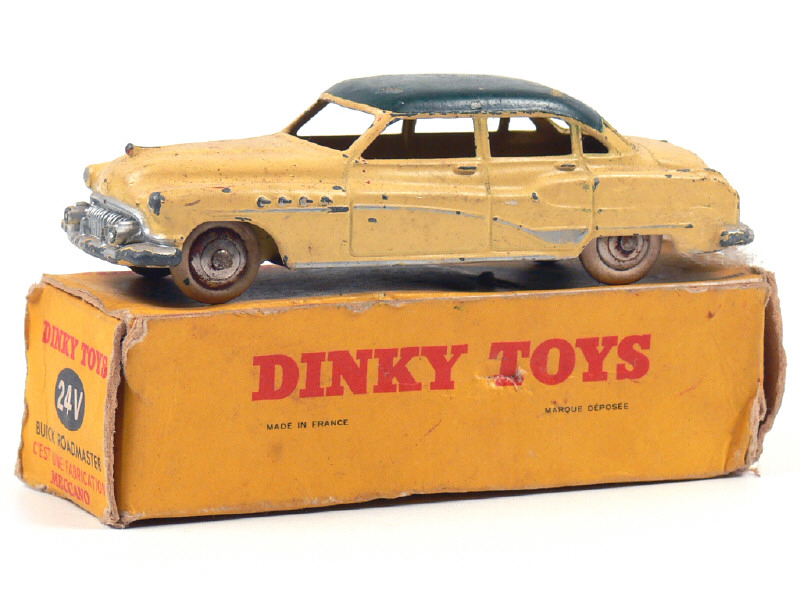 DINKY TOYS (FRANCE) 24V BUICK ROADMASTER (version avec intérieur de toit quadrillé & jantes chromées) jaune paille, toit vert