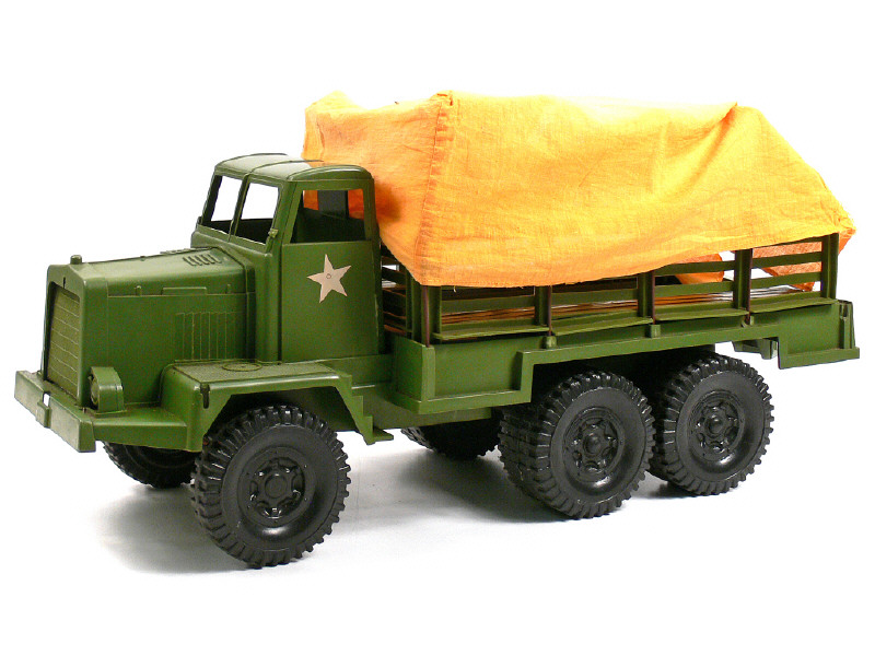DIVERS Camion plateau à ridelles bâché militaire américain kaki, bâche jaune