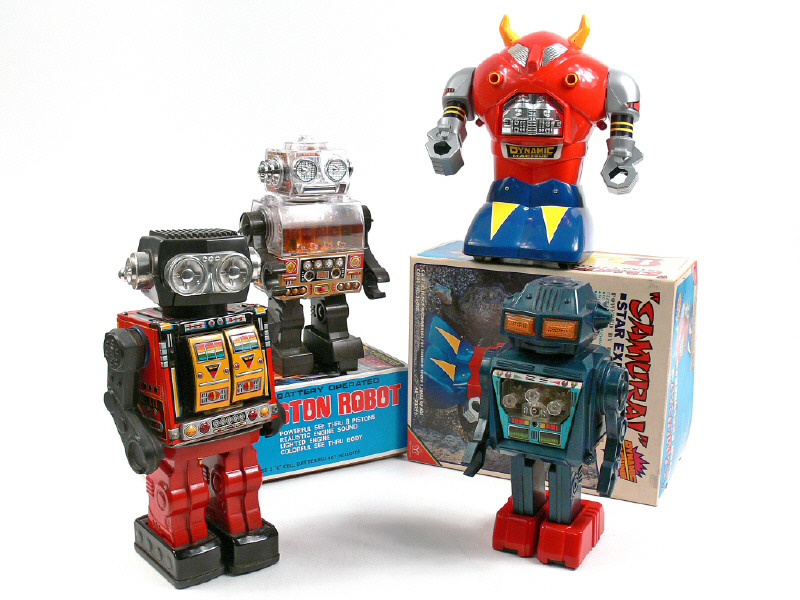 hauteur 26 cm - moteur à piles (fonctionne) - en action, le robot avance tandis que son moteur s'éclaire & que ses pistons bougent - avec bruiteur & cales