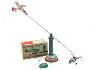 hauteur 30 cm - moteur à piles (à revoir) - en action, l'avion & l'hélicoptère tournent autour de la tour de contrôle