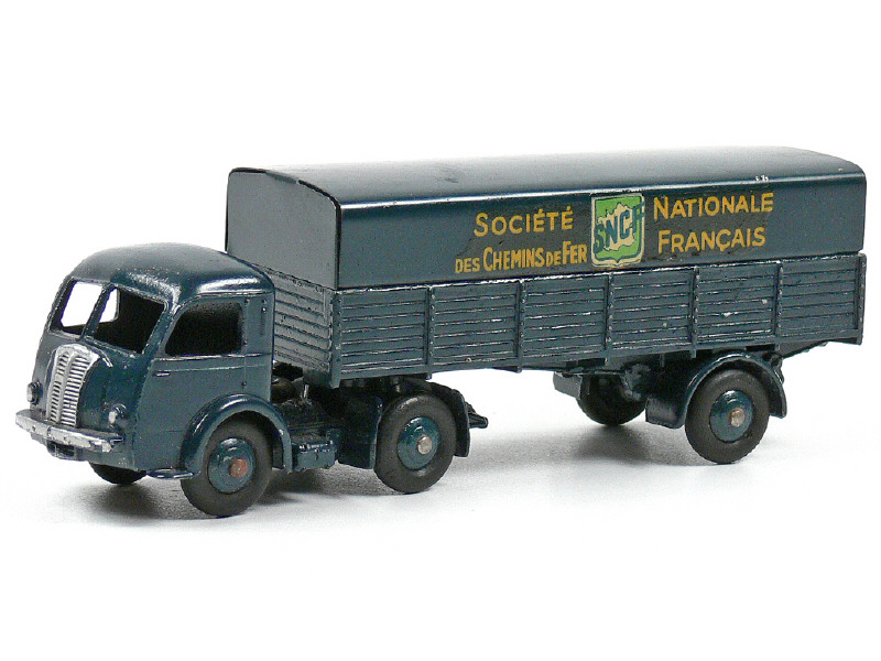 DINKY TOYS (FRANCE) 32AB PANHARD Semi-remorque 'S.N.C.F' (version avec intérieur de toit lisse) bleu foncé (fond de l'écusson uni), version à décalques