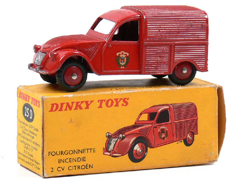 DINKY TOYS (FRANCE) 25D CITROËN 2CV Fourgonnette de pompiers rouge, jantes convexes bordeaux