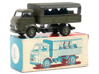 3ème version, avec mention 'SAVIEM' au dessus de la calandre & bâche imitation textile - avec 6 soldats (collés sur les banquettes)