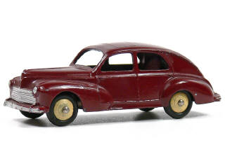 DINKY TOYS (FRANCE) 24R PEUGEOT 203 Petite lunette arrière (version avec intérieur de toit lisse & feu de stop) grenat, jantes crème