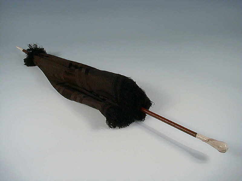 DIVERS Ombrelle, manche bois et ivoire et soie marron foncé