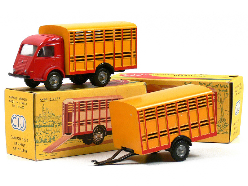 C.I.J. (FRANCE) 3/28 Remorque-bétaillère jaune d'or & rouge