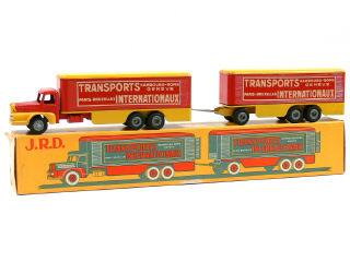 JRD (FRANCE) 127 UNIC LAUTARET 'TRANSPORTS INTERNATIONAUX' avec remorque jaune citron & rouge foncé