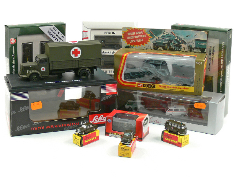 miniatures reproduisant les modèles : VOLKSWAGEN, MERCEDES, HANOMAG, MAGIRUS-DEUTZ & JEEP - on y retrouve les marques : BREKINA, CORGI, HERPA & SCHUCO